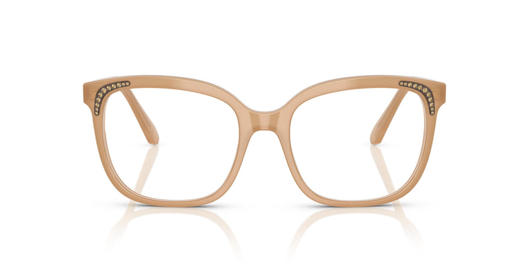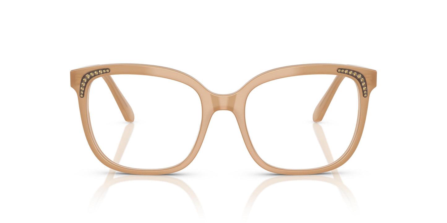 This optical model, with a butterfly frame and attractive crystals on the front and temples, showcases Swarovski's unique and irresistible style. With a gradient of crystals in different sizes, Swarovski creates a cheerful light movement to add its radiant touch to this acetate design. At the outer ends of the front, Swarovski crystals bring light to the metal plates and temples, among which the logo is placed. Swarovski offers intense colors, including classic options like black, and seasonal options like blush pink.