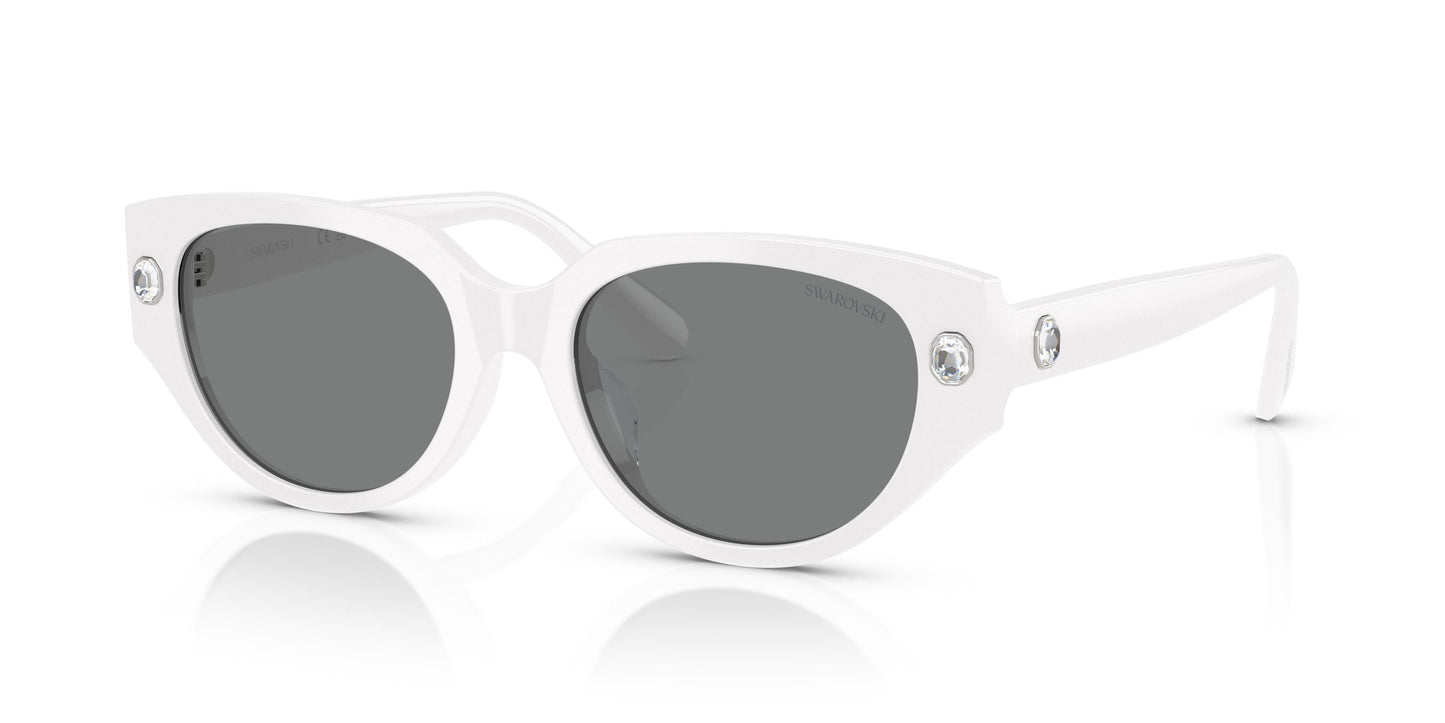 Explore sophistication with Swarovski sunglasses model 0sk6035d. Designed for the woman seeking elegance, they feature an acetate frame in a radiant white that evokes purity and style. The butterfly shape of their caliber adds a touch of femininity and distinction, while subtly decorated temples ensure a perfect fit. The carefully designed bridge offers comfort and stability. Their dark gray lenses provide optimal protection, merging functionality and glamour in every glance.