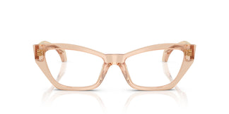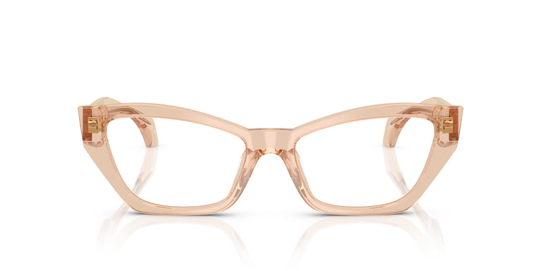 A geometric cat eye with a bold versace look. Crafted in acetate with minimalist decoration, these frames have a sleek, feminine aesthetic. Complete with the versace logo on the temple for an understated yet powerful style. This bold cat-eye shape in lightweight acetate features the versace logo in gold lettering. Colours: black, dark havana, transparent burgundy, transparent light brown or transparent pink.