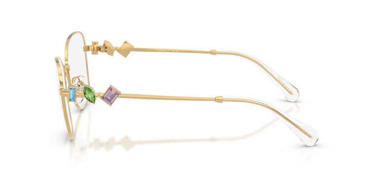 Estas gafas ópticas, lujosas sin esfuerzo, exhiben deslumbrantes cristales de Swarovski a lo largo de las patillas en una variedad de formas, tamaños y tonos de color. El frontal de gran tamaño se mantiene discreto, lo que permite que los vibrantes cristales ocupen el centro del escenario, creando una imagen llamativa y atrevida. Monturas de metal plateado, dorado y dorado pálido disponibles con cristales de diferentes formas en las patillas en colores verde, azul o caramelo. Gafas ópticas de metal de montura completa con 3 cristales en cada patilla y terminales de acetato en varios colores transparentes.