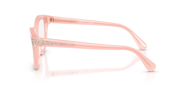 These Swarovski optical glasses, which radiate glamour and allure, feature a cat-eye frame with a fascinating stream of crystals on a metal plate that extends to the temples. With their striking design and captivating luminosity, these glasses add a charming touch to any outfit. Swarovski crystals of different sizes are placed on a metal plate that runs across the front and temples. The pink model showcases Light Rose crystals, while the other colors stand out with contrasting tone crystals, such as burgundy with Golden Shadow crystals.