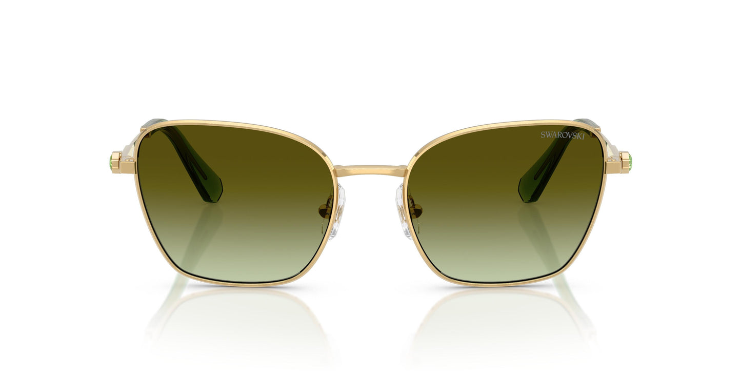 These Swarovski sunglasses combine classic elegance and sophisticated glamour. The square frame, inspired by the iconic millenia family, is made of metal with gradient lenses. To enhance the metallic shine of the design, a mini octagonal crystal has been set in each temple. These square metal sunglasses, with polarized lenses as an option, feature an exclusive octagonal crystal on the temples and additional end pieces. Swarovski, always looking for canvases for color, plays with the tones of metal, lenses, crystals, and end pieces to create cheerful looks.