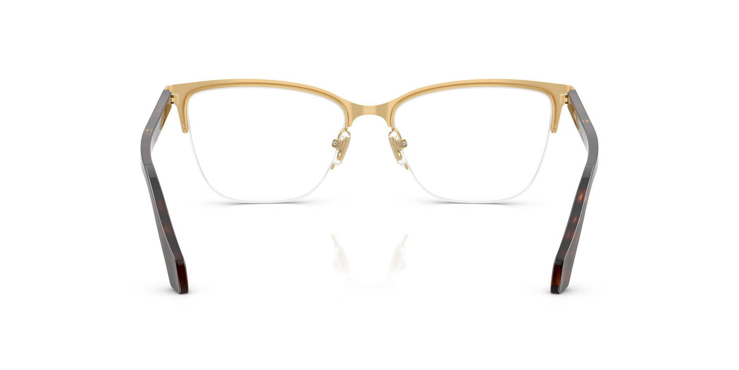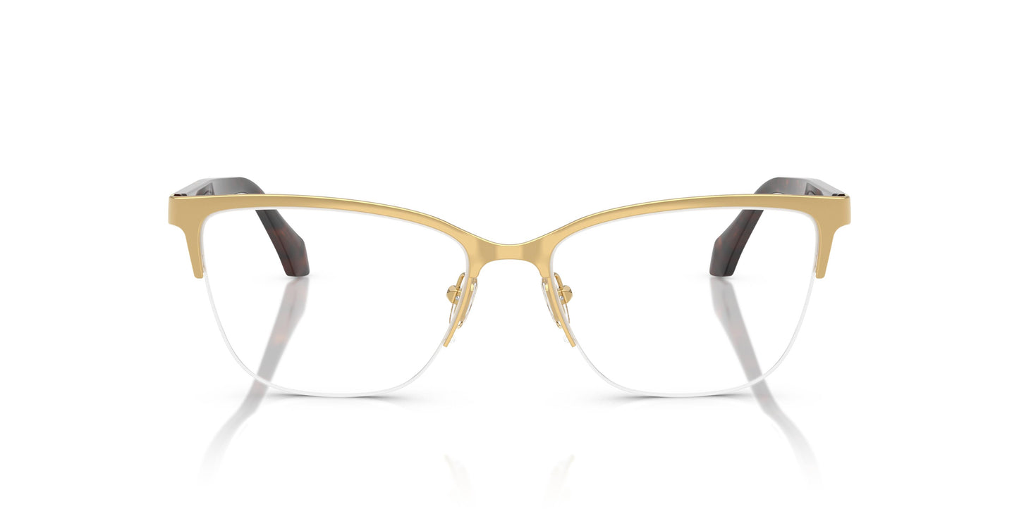 Optically chic style with an iconic twist. Highlighting a feminine silhouette, this mixed construction model features a metallic half-rim front and sleek acetate temples. A contemporary take on a classic look, with a subtle hint of Versace glamour. The soft cat-eye front has a half-rim metallic frame in gold, gold and black, or rose gold. The acetate temples in black, havana or transparent black cherry are finished with the versace logo in gold lettering.