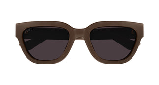 The minimal line is characterized by timeless, simple acetate models. A feminine acetate cat-eye design. Intertwined G logos on the temples. A commercial color palette combined with plain lenses.