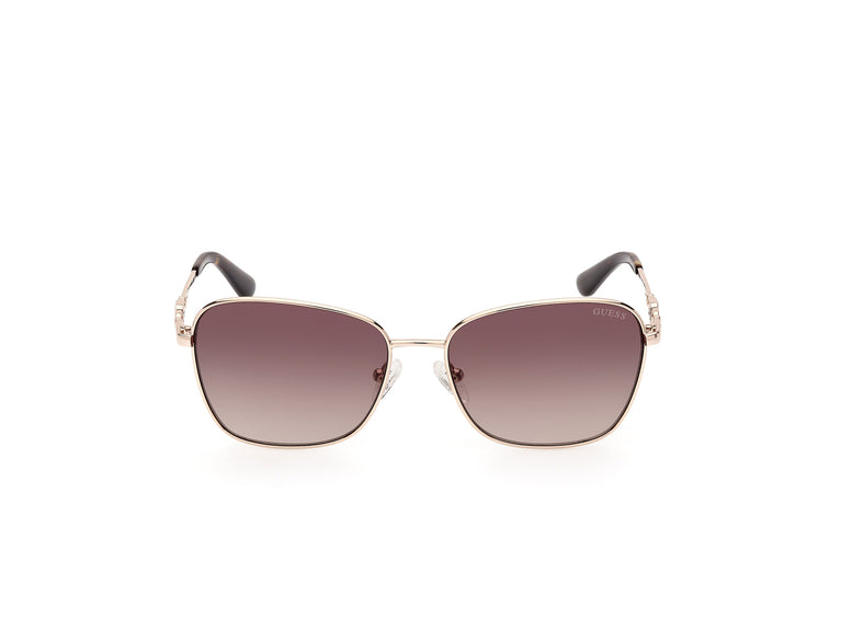 Explore the world through sophisticated Guess GU7884 sunglasses, designed for women who appreciate elegance in every detail. The shimmering pale gold metal frame shines with distinction, while the butterfly shape adds a touch of glamour. The finely crafted temples are complemented by a delicate bridge, ensuring comfort and style. The gradient brown lenses offer clear, protected vision, enveloping your gaze in a halo of mystery and sophistication.