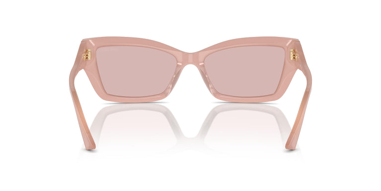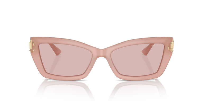 This versatile cat-eye style, with sharp angles in its streamlined silhouette, is finished with the metal JC logo on each side. A modern cat-eye style with tapered temples and a metal JC emblem on each side of the frame. Discover the contemporary and unexpected shades of sand opal, sky blue, and pink, as well as solid black and full Havana, all with matching lenses.