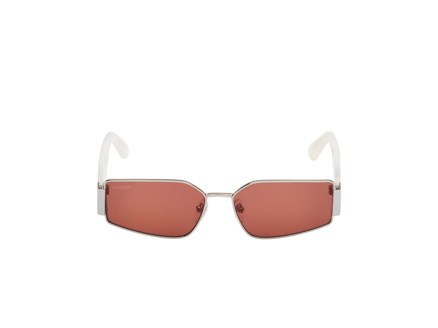 Discover the exclusive Max&co sunglasses, model Mo0128, a true gem for those who value elegance and style. Their rectangular frames in shiny palladium-colored metal add an unparalleled touch of distinction. The finely crafted temples ensure an impeccable fit, while the bridge is designed for all-day comfort. The brown lenses, with normal properties, add a subtle contrast that enhances the sophistication of this essential accessory.