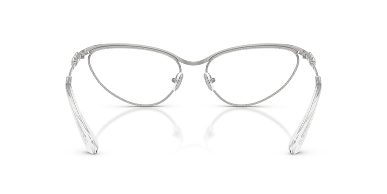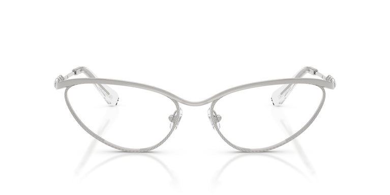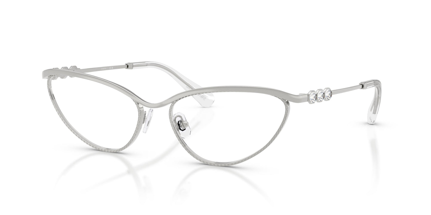 Los icónicos cristales octogonales de Swarovski enriquecen de elegancia este modelo óptico de ojo de gato. 3 cristales en cada patilla aportan luz a las monturas doradas o plateadas, acabadas con terminales de acetato transparente que combinan con los tonos de los cristales para un look refinado y armonioso. Un diseño óptico cat-eye con delicados grabados octogonales en la parte inferior de los aros y 3 exclusivos cristales octogonales en cada patilla. Las monturas plateadas se combinan con cristales transparentes, mientras que las opciones doradas incorporan cristales violeta o peridoto, cada una de ellas acabada con terminales transparentes que combinan con los colores.
