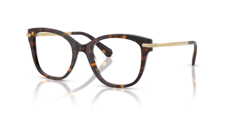 Este diseño óptico de forma cuadrada ofrece una refinada mezcla de metal y acetato en tonos negro, habana o transparente, combinada con patillas redondeadas de metal. Un delicado engaste de cristal pavé envuelve desde la bisagra hasta el frontal, añadiendo el toque justo de brillo que define la elegancia icónica de Swarovski. Los acetatos en negro, habana y transparente se combinan con impresionantes colores metálicos en dorado, dorado pálido y plateado. Un diseño óptico cuadrado con patillas metálicas redondeadas y un delicado engaste de cristal pavé que envuelve con gracia desde la bisagra hasta el frontal.