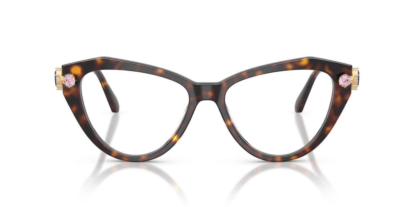 En un maravilloso despliegue de color, Swarovski crea un diseño óptico que hace girar la cabeza. Cristales inspirados en la joyería Gema en diferentes tonos de color y cortes adornan las patillas, con cristales visibles incluso en las esquinas exteriores del frente de acetato del ojo de gato, creando un look edificante lleno de alegría y sofisticación. Cristales de color caramelo o cristales en tonos verdes o azules adornan la sección metálica de las patillas y una parte del frente cat-eye. Un modelo óptico de acetato con patillas de metal adornadas con cristales y terminales de acetato donde se encuentra el logotipo de Swarovski.