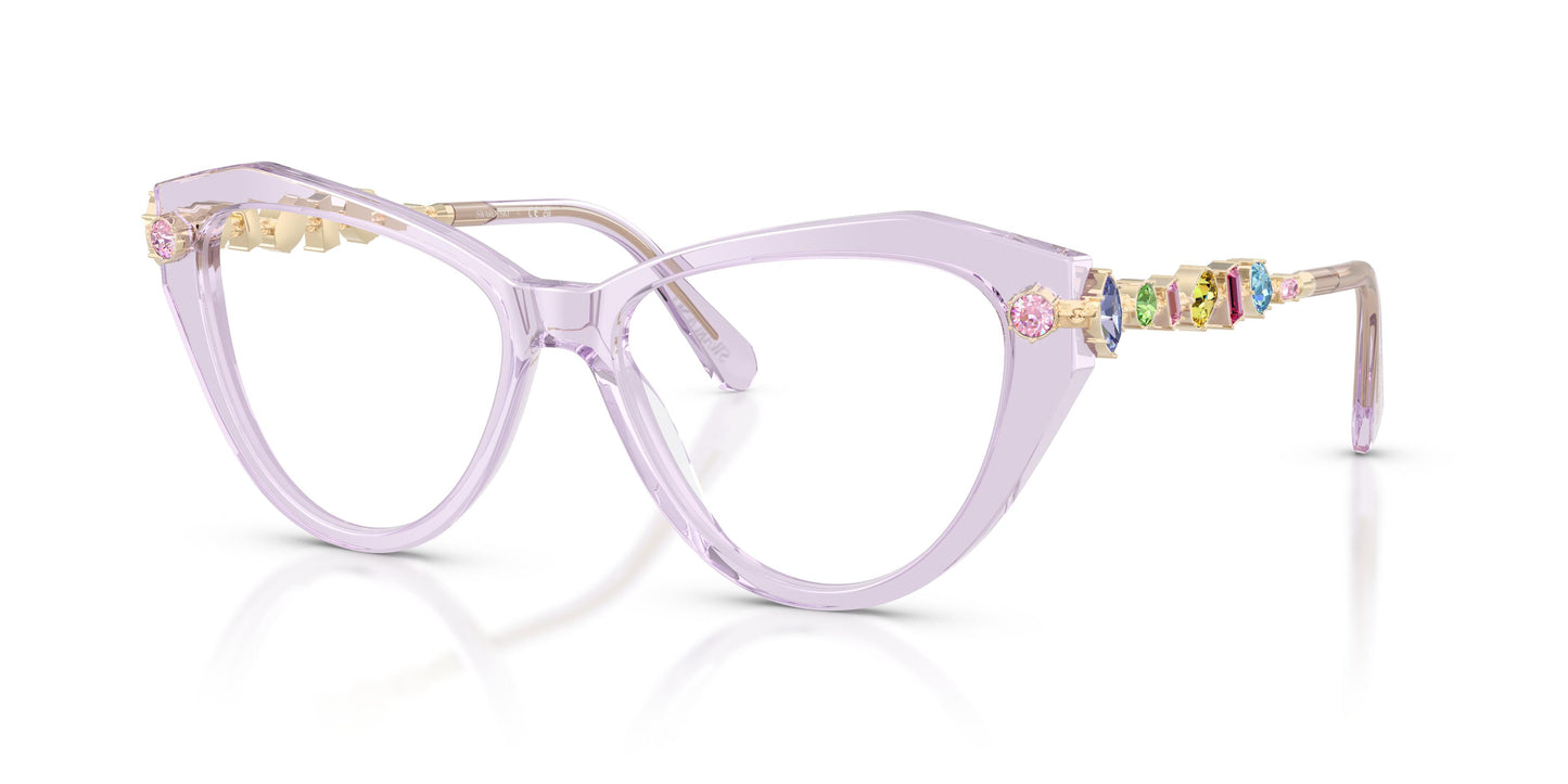 En un maravilloso despliegue de color, Swarovski crea un diseño óptico que hace girar la cabeza. Cristales inspirados en la joyería Gema en diferentes tonos de color y cortes adornan las patillas, con cristales visibles incluso en las esquinas exteriores del frente de acetato del ojo de gato, creando un look edificante lleno de alegría y sofisticación. Cristales de color caramelo o cristales en tonos verdes o azules adornan la sección metálica de las patillas y una parte del frente cat-eye. Un modelo óptico de acetato con patillas de metal adornadas con cristales y terminales de acetato donde se encuentra el logotipo de Swarovski.