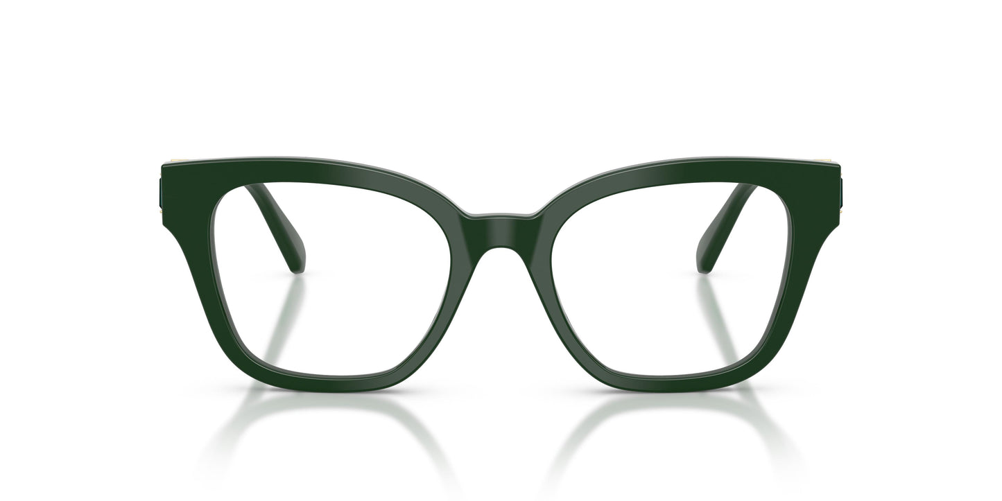 Una juguetona y artística disposición de cristales a lo largo de las patillas hace que estas gafas ópticas realmente destaquen. Swarovski pone su toque característico en este diseño cuadrado de acetato, mostrando su inigualable dominio de los cristales, el color y la luz, dando como resultado un modelo llamativo a la par que elegante. Los cristales de diferentes dimensiones, colores y formas son un llamativo añadido a la sección metálica de las patillas. Gafas ópticas de forma cuadrada disponibles en una gama de colores de acetato que incluye negro, habana, verde oscuro, transparente y rosa transparente.