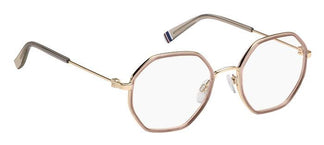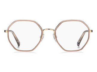 Explore sophistication with Tommy Hilfiger TH 2056 optical eyewear, a jewel of rounded design that reimagines elegance. The frame, crafted from stainless steel, shimmers with a delicate pink hue that highlights its femininity and modernity. The bridge is subtly integrated, while the temples offer an impeccable fit. Every detail of these glasses reflects a superior calibre of craftsmanship, making them a must-have accessory for the woman who values distinction and timeless style.