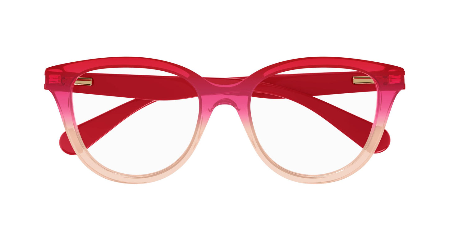 Monture œil-de-chat aux lignes douces en acétate léger. Un mélange de couleurs classiques et vibrantes en dégradé, inspiré de la célèbre famille Franky. Logo Chloé en émail doré sur la branche gauche.