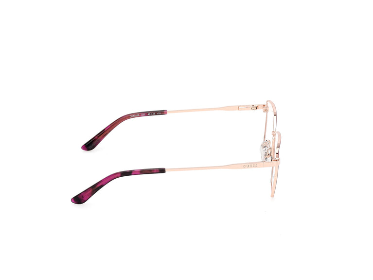 Explorez la sophistication avec les lunettes de vue Guess GU50168, spécialement conçues pour la jeune femme moderne. Leur monture en métal d'une élégante teinte violet mat apporte une touche de distinction, tandis que leur forme géométrique apporte une touche contemporaine. Les branches délicatement dessinées s'associent à un pont épuré pour un ajustement confortable et sûr. Avec un calibre alliant style et fonctionnalité, ces lunettes sont l'accessoire idéal pour sublimer n'importe quel look jeune d'une touche de glamour.