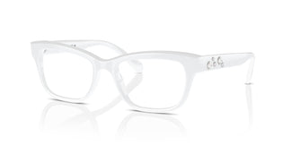 Ces lunettes de vue ont de magnifiques pierres en verre dispersées le long des branches et incarnent l'esprit libre et créatif de Swarovski. La palette de couleurs de l'acétate couvre une large gamme de teintes du noir au blanc-bleu contemporain. Au début des branches, on trouve un placement subtil et ludique de cristaux dans des couleurs transparentes, aigue-marine et rose. Monture rectangulaire polyvalente en noir et havane et dans des choix saisonniers de blanc, blanc-rose et bleu clair.