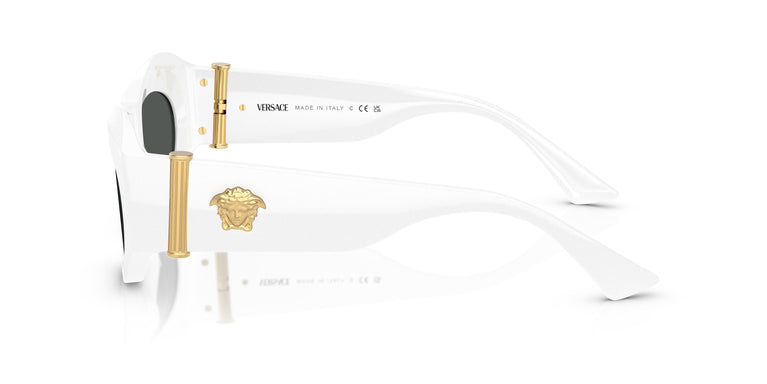 Audacieuses, contemporaines et incontestablement Versace. Avec une barre sourcilière taillée en diagonale, des verres modernes de type œil de chat et les emblématiques méduses en métal, c'est un style fort avec une attitude confiante. Pour un look vraiment moderne, ajoutez des lentilles rose tendre à une monture noire pour un effet de contraste saisissant. Les arêtes vives rencontrent les lignes douces des montures en acétate pour créer une esthétique géométrique. Une colonne en métal avec un mécanisme de charnière incrusté crée une finition élégante sur les larges branches.
