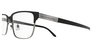 La plaque métallique est une interprétation intemporelle de la signature emblématique de McQueen, pour un style à la fois masculin, rétro et contemporain. Elle s'inspire de la plaque métallique McQueen, emblématique de la joaillerie masculine. Ce modèle rectangulaire, intemporel et masculin, arbore une structure en feuille métallique, rehaussée d'une plaque métallique ornée du logo McQueen. Le logo Alexander McQueen est gravé au laser sur la plaque métallique des branches. La palette de couleurs comprend des nuances métallisées à la finition antique, fidèles à l'héritage de McQueen, associées à un vernis noir brillant ou mat sur la partie supérieure de la face métallique.