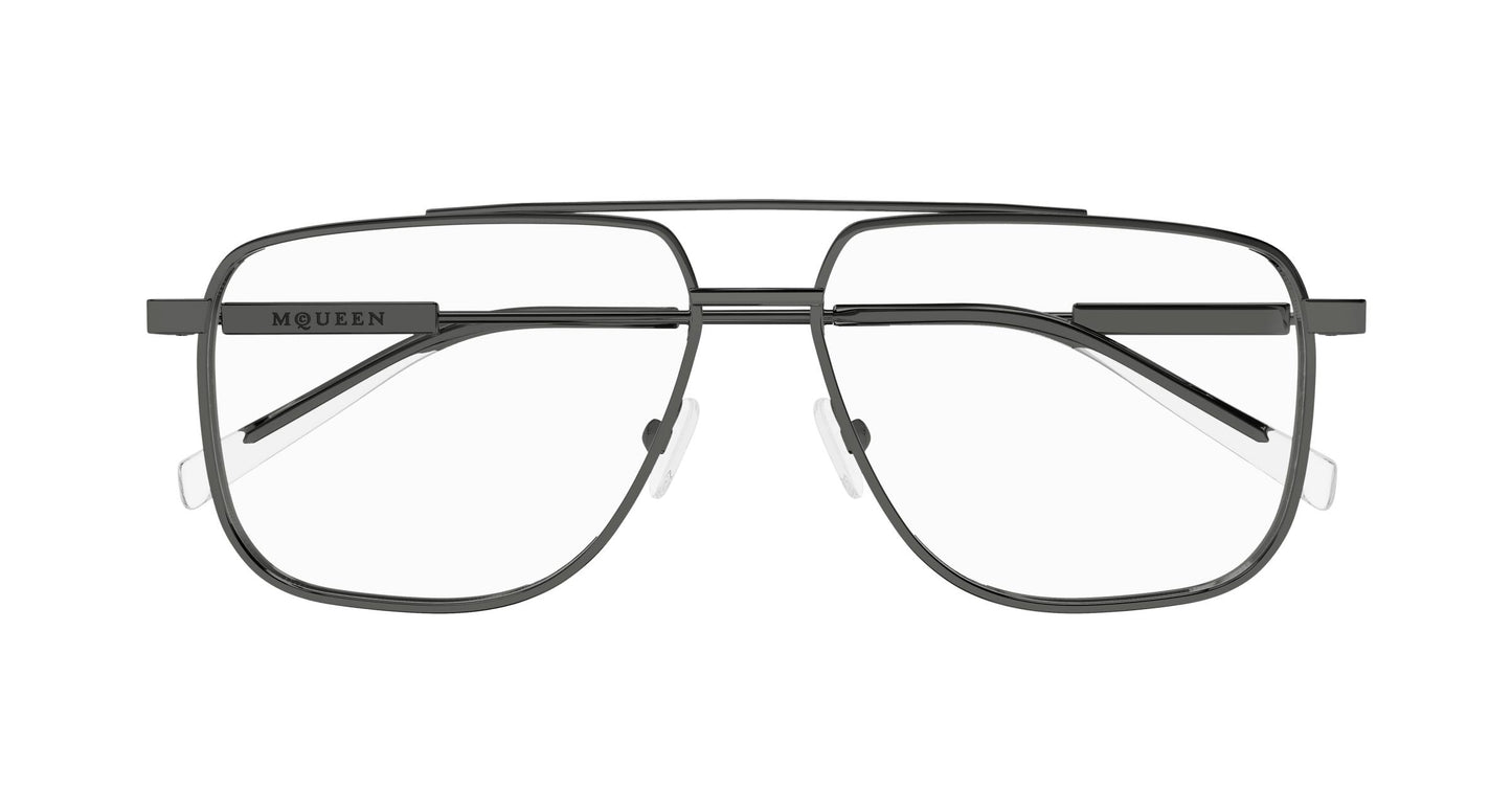 Un nouveau design en métal exclusivement réservé aux hommes. Un modèle Caravan intemporel avec un double pont de nez. Un design discret, caractérisé par des plaques métalliques sur les branches, réduites à une seule, pour un port plus confortable au quotidien. Le nouveau logo McQueen est gravé au laser sur la première plaque métallique.