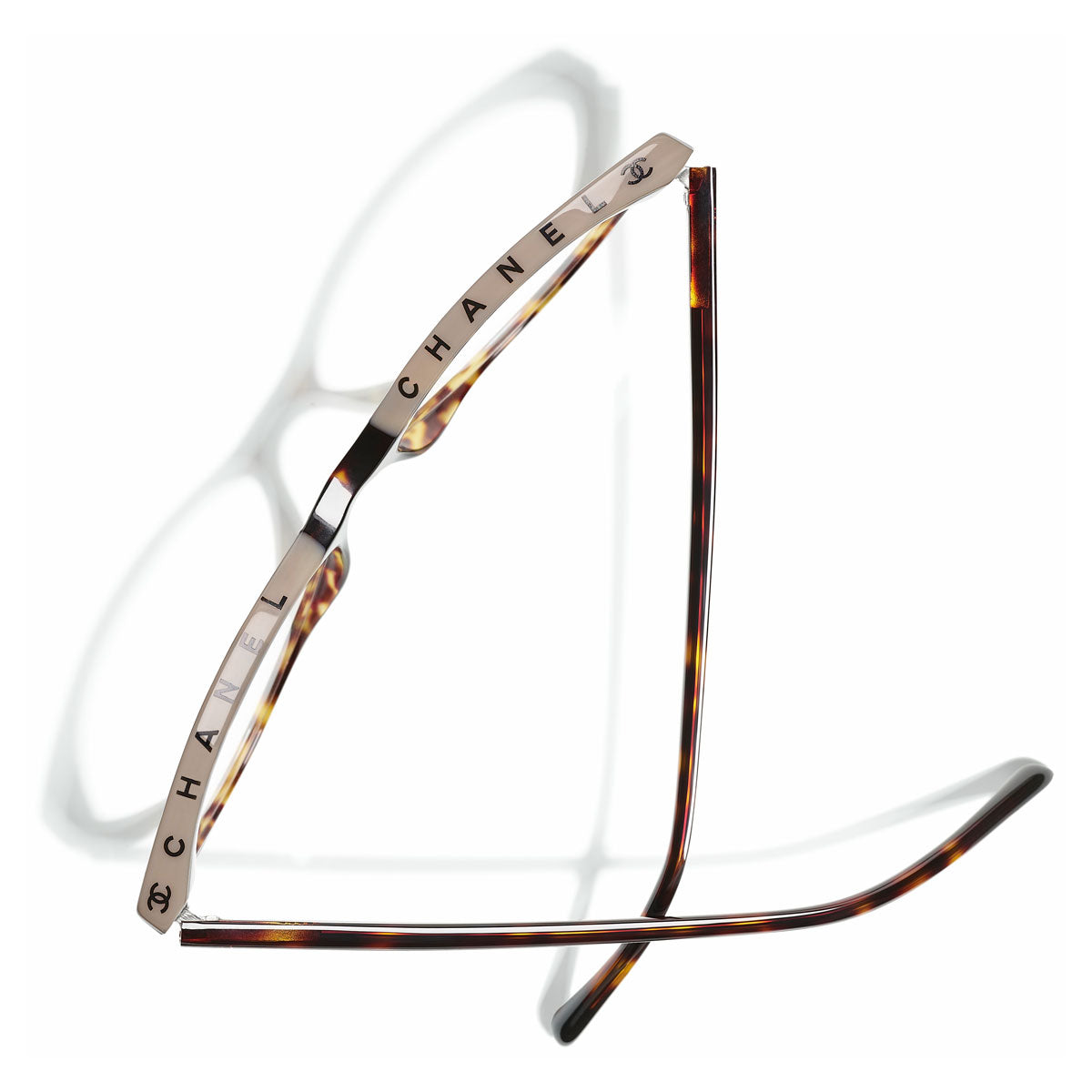 L'histoire de SIGNÉ CHANEL rend hommage à la quintessence de la lunette : une signature forte, une variété de formes et des couleurs essentielles. Face en acétate bicolore. Charnières flexibles aux embouts de branches pour un confort optimal.