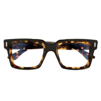 Signature Cutler & Gross. Le modèle 1386 présente une interprétation amplifiée des formes américaines en acétate des années 1950. La monture épaisse de 9 mm est dorée, avec des cornes vintage et allégée par des fraisages internes et externes.