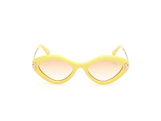 Découvrez les lunettes de soleil exclusives Emilio Pucci, modèle EP0223, créées pour les femmes qui apprécient le luxe et la sophistication. Leur monture géométrique d'un jaune clair éclatant sublime le visage d'une touche de distinction. Les branches finement sculptées se marient à un pont délicat pour un confort et un style irréprochables. Les verres, d'un élégant dégradé de brun, offrent une vue sublime, parfaite en toute occasion. Un accessoire qui incarne l'essence du design italien et du glamour contemporain.