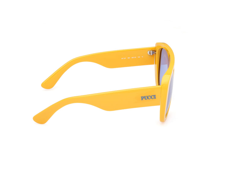 Explorez la sophistication avec les lunettes de soleil Emilio Pucci EP0231, où l'élégance rencontre le design contemporain. La monture jaune foncé, scintillante et éclatante, capture l'essence du style, tandis que les verres bleus apportent une touche de fraîcheur et de modernité. La forme pilote s'adapte parfaitement, alliant des branches méticuleusement travaillées à un pont qui assure confort et glamour. Un accessoire indispensable pour les femmes qui apprécient la distinction jusque dans les moindres détails.