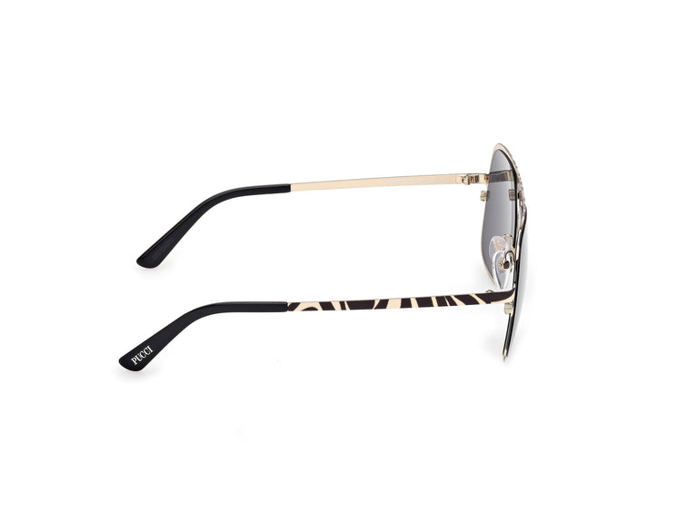 Découvrez la sophistication et le style avec les lunettes de soleil Emilio Pucci EP0238. Conçues pour la femme moderne, ces lunettes Navigator associent une monture en métal à une finition animalière/monochrome distinctive qui évoque une touche d'exclusivité. Les branches élégantes sont complétées par un pont délicat, assurant un ajustement parfait. Leurs verres fumés offrent une protection visuelle sublime, ce qui en fait un accessoire indispensable pour celles qui apprécient la mode avec une touche de distinction.
