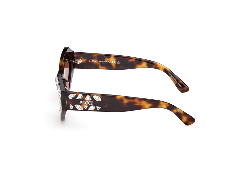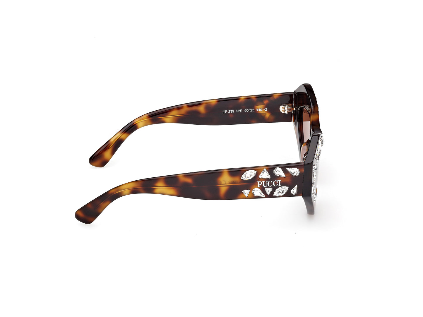 Découvrez les lunettes de soleil exclusives Emilio Pucci EP0239, un véritable bijou pour celles qui recherchent élégance et distinction. Leur monture œil-de-chat, confectionnée en plastique havane foncé, évoque un glamour intemporel avec une touche moderne et sophistiquée. Les branches au design précis se fondent harmonieusement avec le pont, offrant un ajustement parfait et confortable. Les verres marron complètent ce design, offrant une vision claire et raffinée.