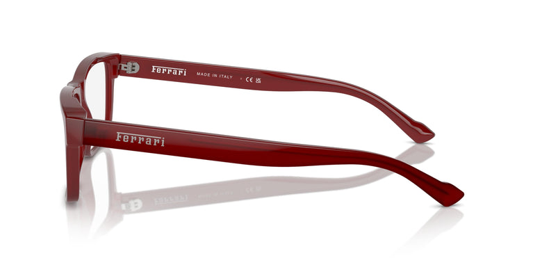 La monture rectangulaire classique est réinventée avec une précision extrême. L'acétate fin sublime la silhouette et crée une continuité entre la face et les branches fines, ornées du logo légendaire. Découvrez le noir classique, le havane, le gris rayé ou le rouge transparent. Élégante monture optique rectangulaire moulée en acétate fin, elle incarne l'identité Ferrari avec ses couleurs distinctives et son logo en métal embossé sur la branche.