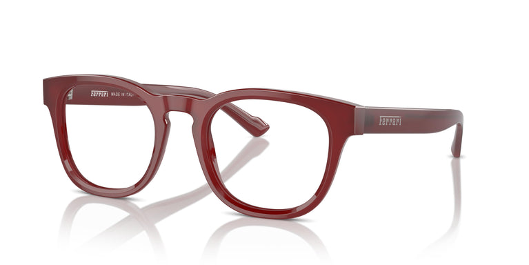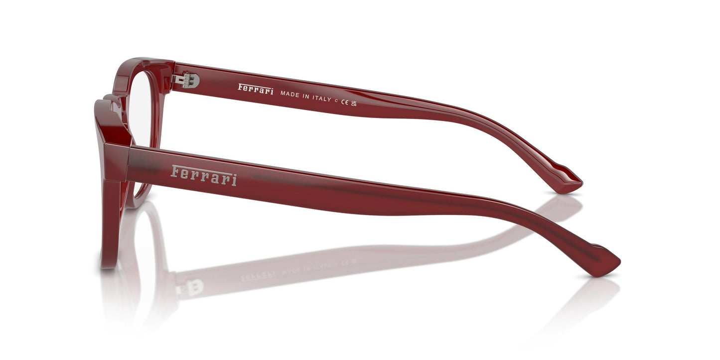 Ferrari dévoile sa sophistication et apporte une touche artisanale à ce modèle de lunettes rondes. L'acétate fin crée une ligne fluide qui se prolonge jusqu'aux branches, ornées du logo emblématique Ferrari. Optez pour un style classique en noir ou havane, ou pour des options plus originales comme le rouge ou le bleu transparent. Des lunettes intemporelles à la silhouette ronde en acétate fin. Une interprétation raffinée de l'héritage Ferrari avec des couleurs distinctives et un logo en relief sur les branches.