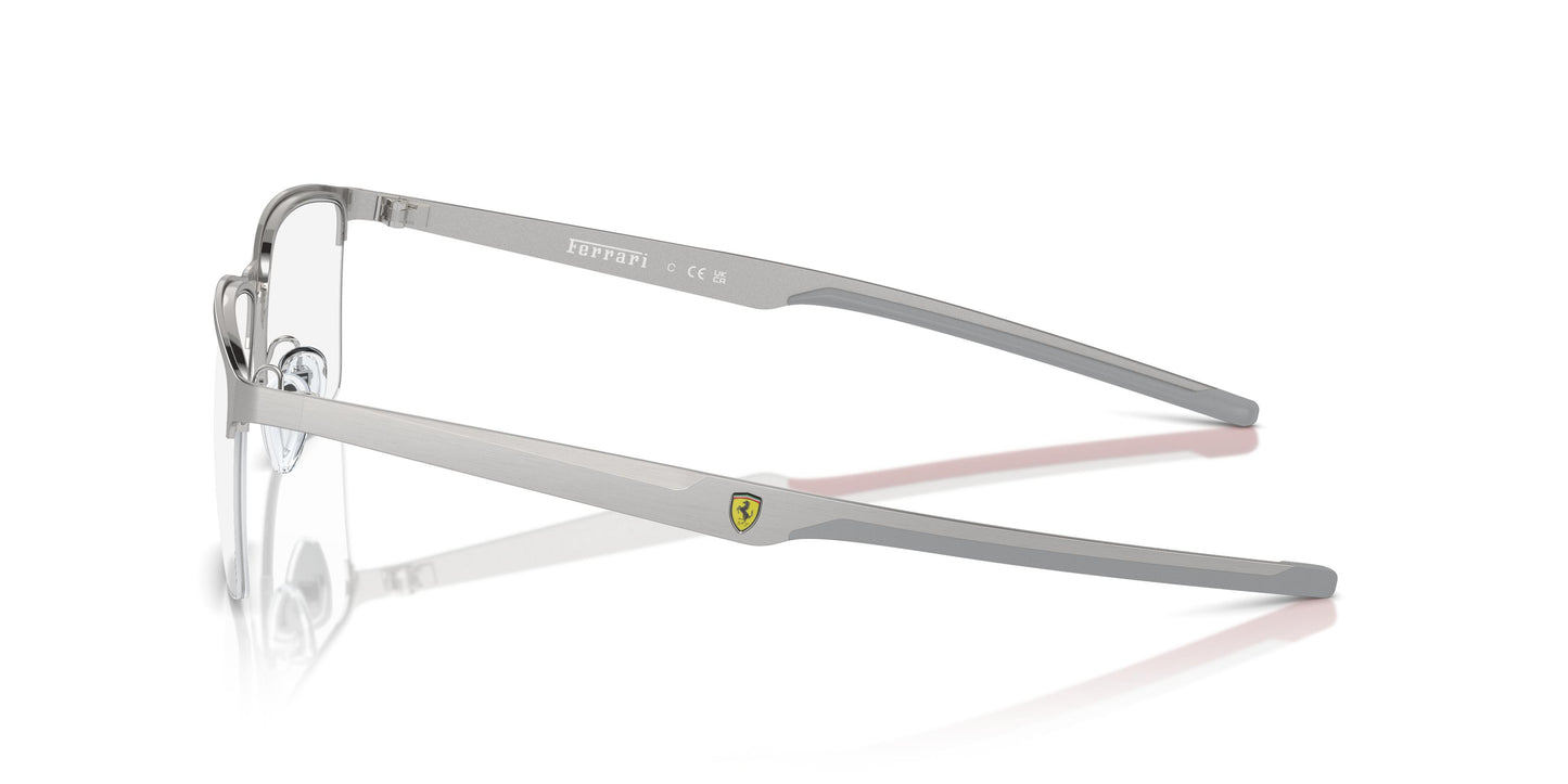 Les lignes de ce modèle demi-cerclé expriment la vitesse et l'esprit Ferrari. Cette monture rectangulaire en métal est dotée de branches fines, dont l'embout en caoutchouc arbore la palette distinctive et le logo Scuderia Ferrari. Grâce à sa structure métallique, cette monture demi-cerclée est un classique intemporel. Les branches fines en métal évoquent l'héritage de la course automobile, avec leur embout en caoutchouc contrastant et le logo Scuderia Ferrari.