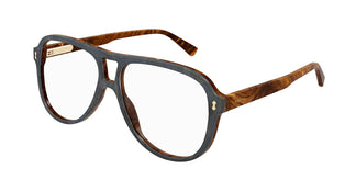 Explorez la sophistication avec les lunettes Gucci Gg1044O pour hommes, où la forme aviateur classique est réinventée avec un élégant acétate bleu. La monture méticuleusement conçue est associée à des branches robustes qui assurent un ajustement parfait. Le pont subtilement courbé ajoute une touche de distinction, tandis que les verres transparents de qualité standard garantissent une vision claire et précise. Un accessoire qui transcende la mode, offrant style et fonctionnalité dans les moindres détails.'}