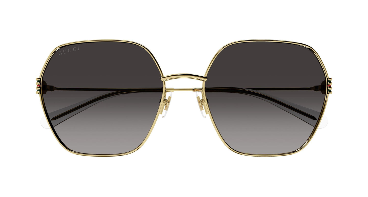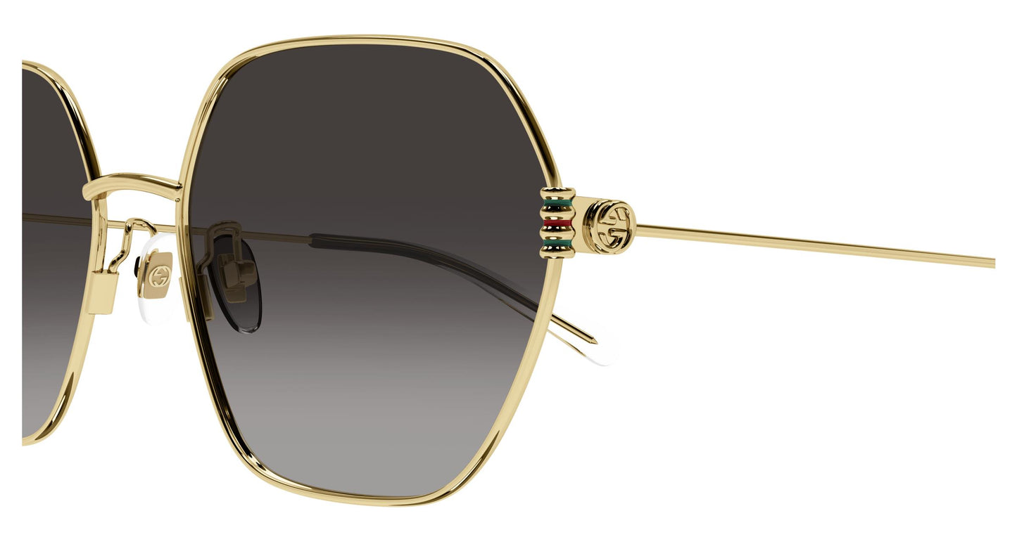 Design géométrique. Modèle en métal léger. Branches fines ornées du logo GG. Détails en métal émaillé rappelant le motif Web des charnières.