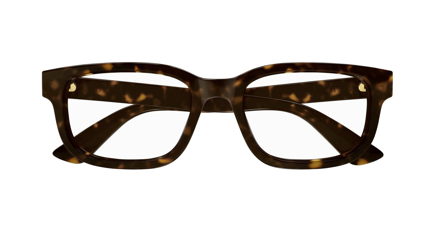 La ligne minimaliste se caractérise par des modèles en acétate simples et intemporels. Un modèle rectangulaire masculin est réalisé en acétate. Le logo Gucci est gravé au laser sur les branches. La palette de couleurs est sombre et masculine.