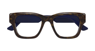 Modèles en acétate avec branches colorées à double épaisseur rappelant l'emblématique bande Web. Design carré. Logo Gucci sur les branches. Palette de couleurs moderne et commerciale avec au moins deux combinaisons.