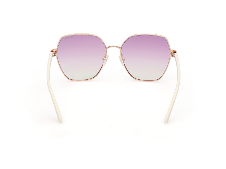 Découvrez l'élégance exquise des lunettes de soleil Guess, modèle GU00108, conçues pour les femmes qui apprécient le raffinement. La monture géométrique en métal or rose étincelant capture la lumière à chaque mouvement, tandis que les branches délicatement travaillées assurent un ajustement parfait. Le pont subtilement incurvé et le calibre minutieusement calculé offrent confort et distinction. Les verres dégradés violets ou miroirs ajoutent une touche de mystère, transformant chaque regard en une déclaration de sophistication.
