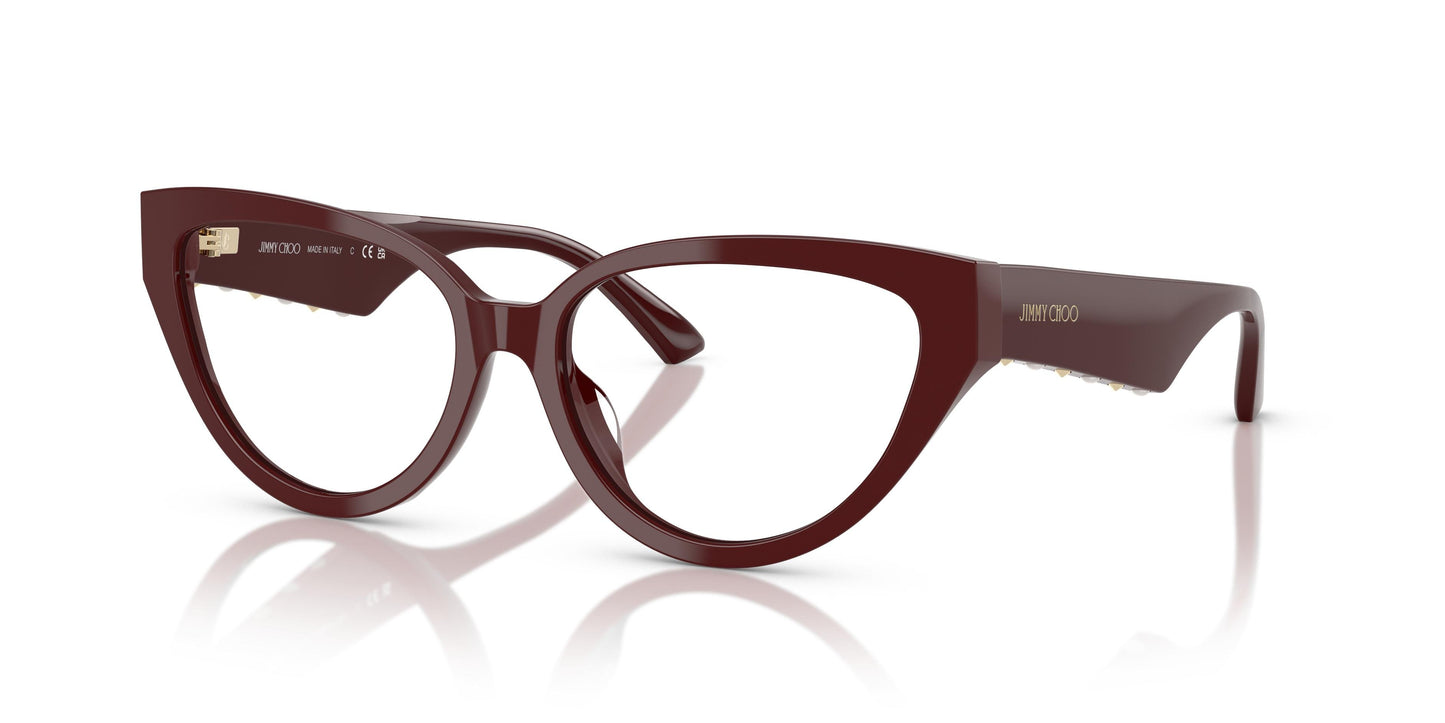 Associant une forme œil-de-chat féminine à des ornements subtils et raffinés, ce modèle optique captivant incarne l'élégance moderne. Perles délicates et clous métalliques subliment des branches sculptées et audacieuses. Un logo Jimmy Choo saisissant sublime l'acétate facetté disponible en noir, havane, marron ou denim foncé.