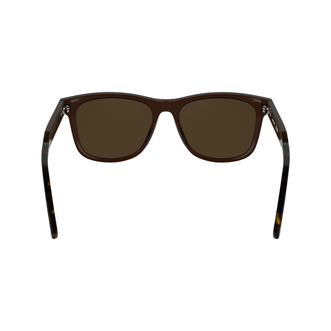 Découvrez la sophistication incarnée par les lunettes de soleil Lacoste L6060s, conçues pour l'homme moderne. Leur monture carrée, en matériau injecté, arbore une élégante teinte marron foncé transparente qui évoque une profondeur subtile. Les branches soigneusement sculptées assurent un ajustement parfait, tandis que le pont garantit un confort optimal. Ce design distinctif protège non seulement vos yeux, mais sublime également votre style grâce à sa touche de distinction incomparable.