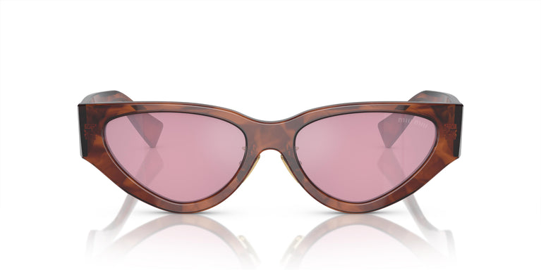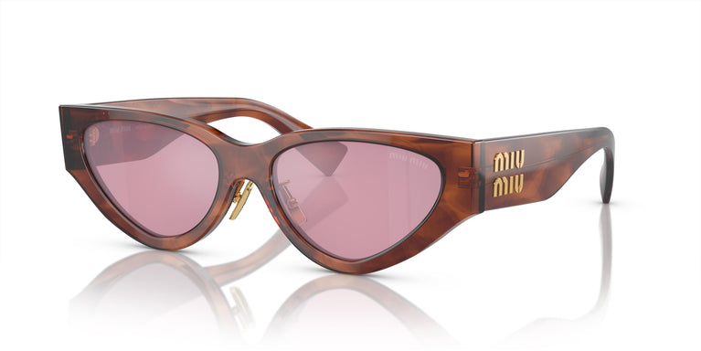 Miu Miu accorde une attention particulière à la monture, au logo et aux couleurs de ce modèle. La monture œil-de-chat, audacieuse et féminine, est associée à des couleurs éclatantes et au logo vertical Miu Miu emblématique sur les branches épaisses. Ces branches épaisses et surdimensionnées sont ornées du logo vertical Miu Miu, tout aussi audacieux, en métal doré brillant. Outre les couleurs éclatantes de l'acétate, Miu Miu propose des verres accrocheurs, comme le rose poudré, le vert et le jaune foncé.