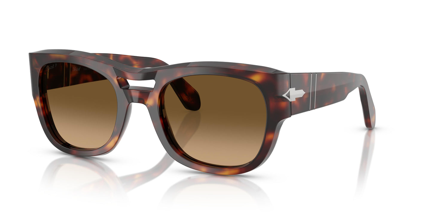 Persol insuffle un nouveau souffle à une forme rectangulaire en acétate, la sublimant par un double pont et des branches larges. L'introduction d'une nouvelle interprétation triangulaire de l'emblématique Supreme Arrow, inspirée d'un design d'archives, renforce son impact tout en conservant une sophistication inégalée. Une forme rectangulaire lisse en acétate, avec un double pont et des branches larges, met en valeur la Supreme Arrow triangulaire revisitée et un meflecto en métal argenté. Toutes équipées de luxueux verres Barberini, dont certains polarisés, Persol propose une sélection de couleurs d'acétate riches et intemporelles, pleines de caractère.