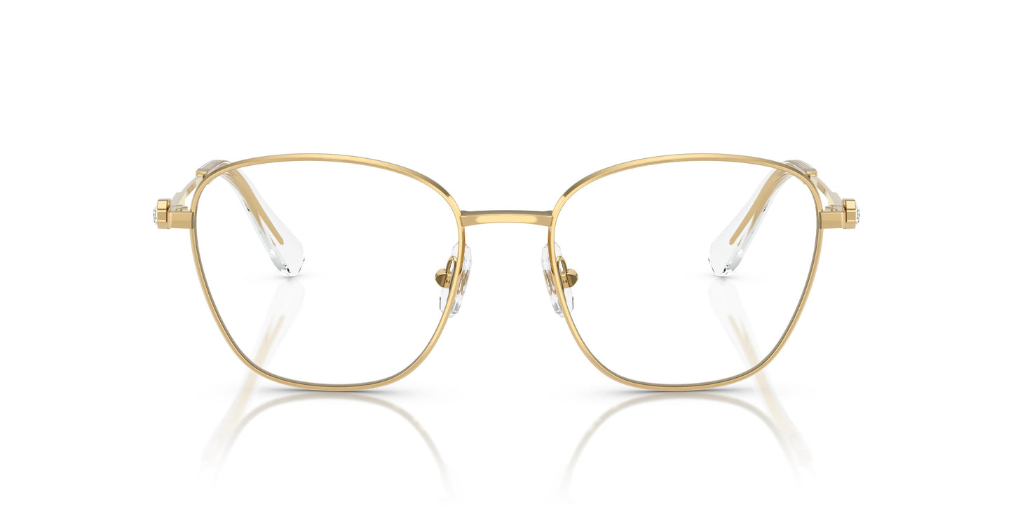 Ces lunettes optiques, inspirées par la famille millénaire, allient élégance traditionnelle et glamour actuel pour animer tout style et occasion. La structure métallique élégante a été finie avec un cristal octogonal exclusif sur chaque branche qui rehausse l'attrait de Swarovski. Swarovski utilise des matériaux pour jouer avec la couleur, avec des options comme le métal doré avec des cristaux d'aigue-marine et des embouts transparents en bleu clair. La forme octogonale caractéristique de Swarovski brille sur chaque branche sous la forme d'un cristal serti avec une taille exclusive.