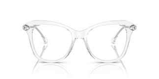 Swarovski fusionne la forme et le caractère pratique des lunettes de vue avec l'éclat et le glamour des cristaux. Ce modèle en acétate est un look décontracté et élégant grâce à sa monture œil de chat et aux cristaux indispensables sur le devant et les branches. Toutes les couleurs présentent un total de six cristaux, qu'ils soient transparents, aigue-marine ou golden shadow. Monture féminine œil de chat avec des options impressionnantes d'acétate transparent.