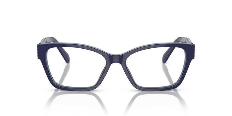 Avec une monture rectangulaire simple, les détails de ce modèle de lunettes sont ce qui lui confère son attrait frappant. Les cristaux sont méticuleusement placés sur les côtés de la face à trois couches et sur les branches, mettant en valeur la précision et le savoir-faire de Swarovski. 32 cristaux transparents ou de couleur rose, nuit argentée et aigue-marine ornent les côtés de la face et le haut des branches. L'expertise de Swarovski en matière de combinaison de couleurs est démontrée par la palette de couleurs et la combinaison d'acétate et de cristal.