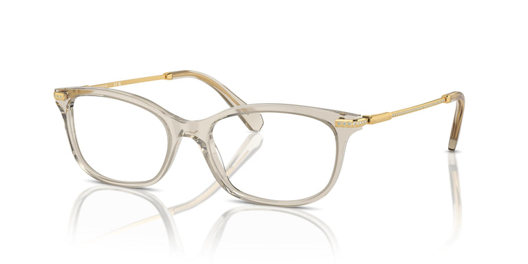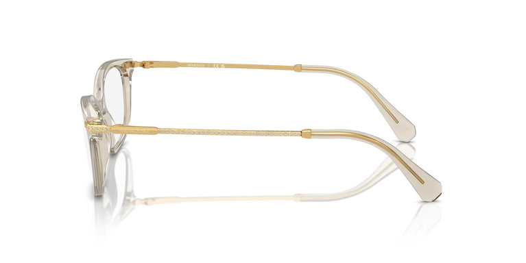 À première vue, cela ressemble à une discrète monture rectangulaire en acétate, mais les branches sont tout sauf simples. Lunettes de vue avec la touche brillante pour laquelle la marque est si connue, inspirées des sertissages en cristal pavé de Swarovski. Les branches serties de jeux de cristaux pavé ont une plaque brillante avec le logo gravé de Swarovski et des embouts en acétate. La monture rectangulaire en acétate est disponible dans une gamme de couleurs élégantes, y compris des options en noir, havane foncé et transparent.