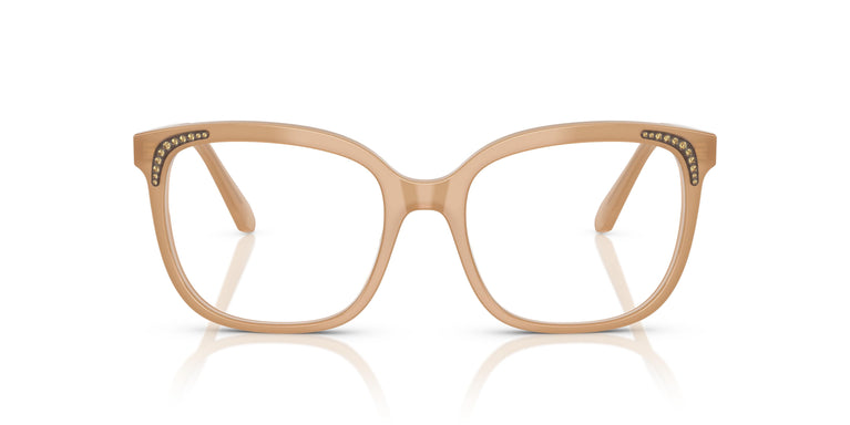 Ce modèle optique, avec une monture papillon et des cristaux attrayants sur le devant et les branches, met en valeur le style unique et irrésistible de Swarovski. Avec un dégradé de cristaux de différentes tailles, Swarovski crée un mouvement lumineux joyeux pour ajouter sa touche rayonnante à ce design en acétate. Aux extrémités extérieures du devant, les cristaux Swarovski apportent de la lumière aux plaques métalliques et aux branches, entre lesquelles le logo est placé. Swarovski propose des couleurs intenses, y compris des options classiques comme le noir, et d'autres saisonnières comme le rose pâle.