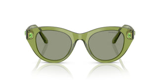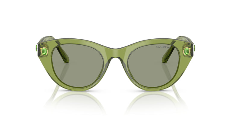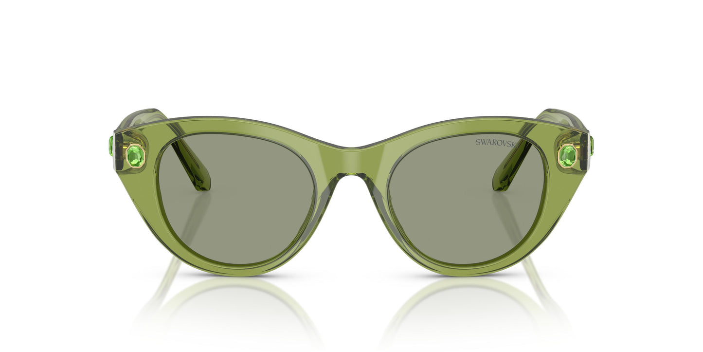 Ces lunettes de soleil Swarovski amusantes dégagent une ambiance rétro chic. Inspirées par la famille millénaire de Swarovski, les montures rondes sont fabriquées en acétate. Les mini-cristaux, qui apportent l'éclat exclusif de la marque, sont disposés sur le devant et sur chaque branche, et sont présentés dans la forme octogonale reconnaissable de Swarovski. Sertis dans une lunette, il y a 2 cristaux sur le devant et 2 sur les branches, avec une coupe octogonale exclusive. Dans un étalage d'extravagance joyeuse, Swarovski propose des combinaisons de couleurs transparentes en bleu clair, rose et vert avec des cristaux assortis.