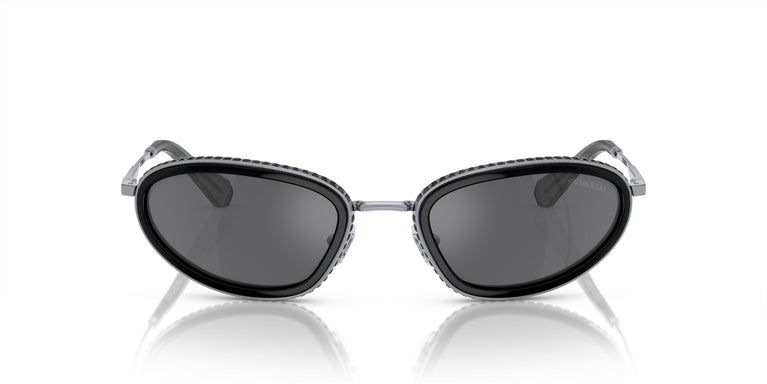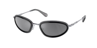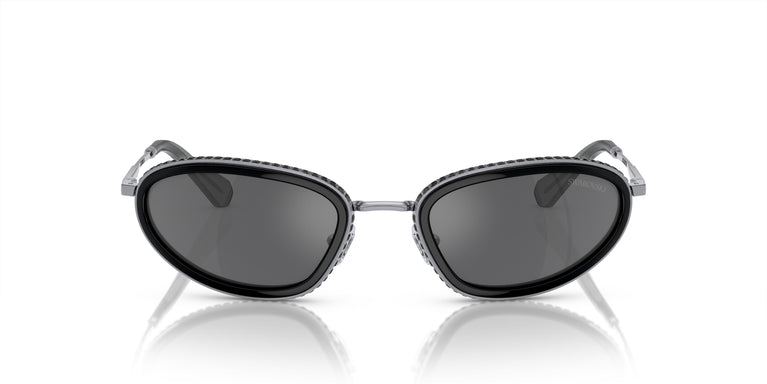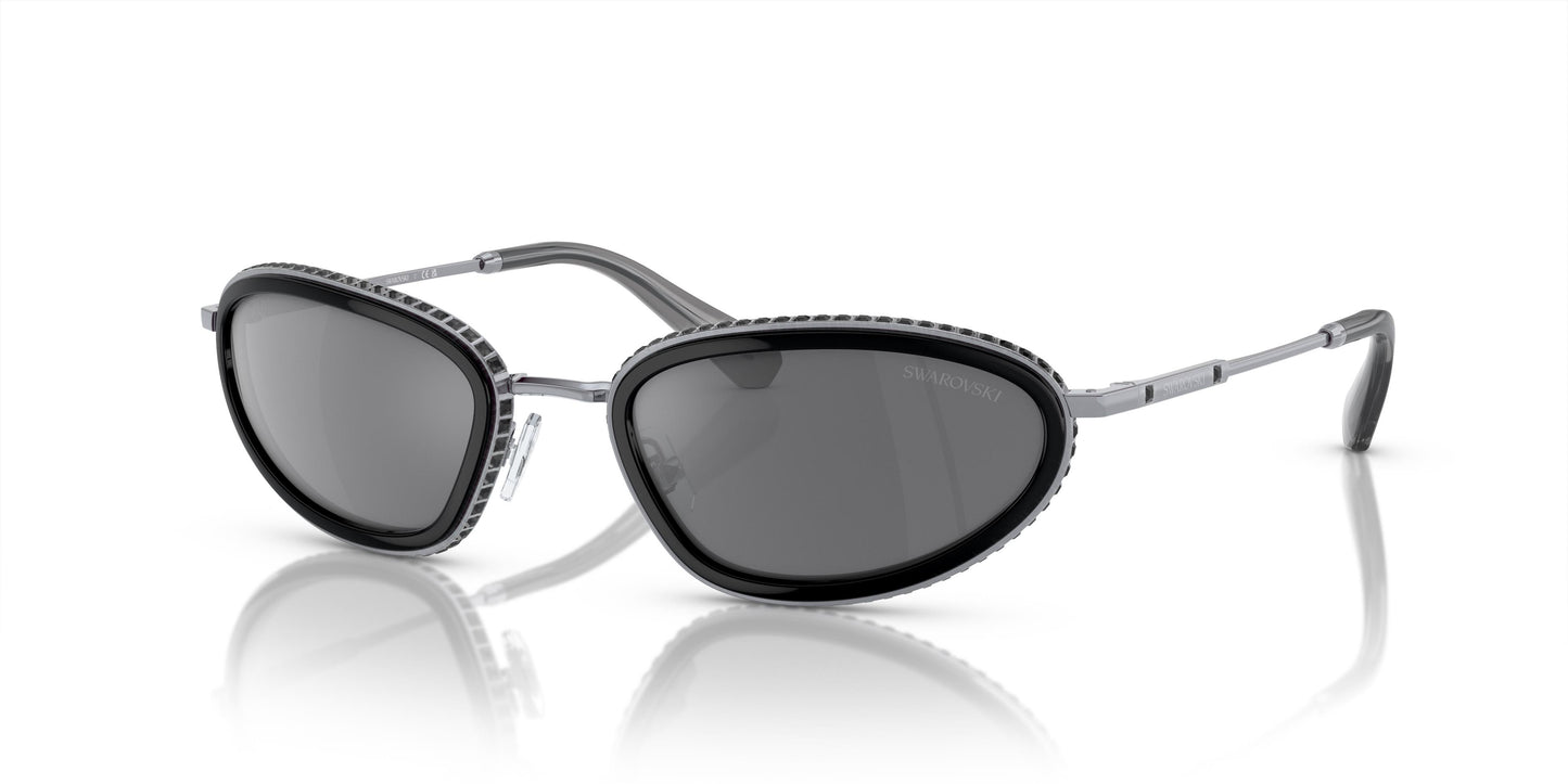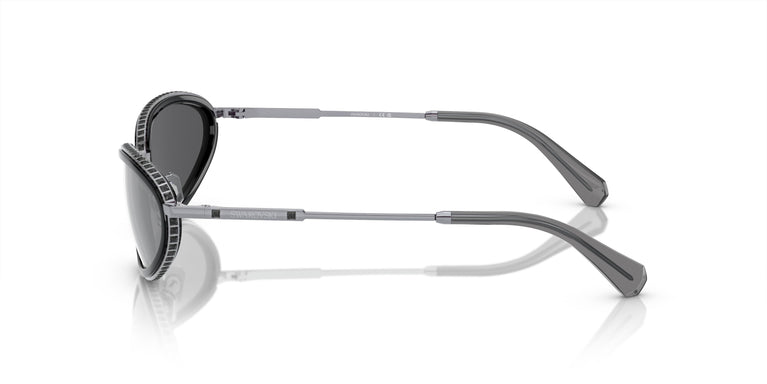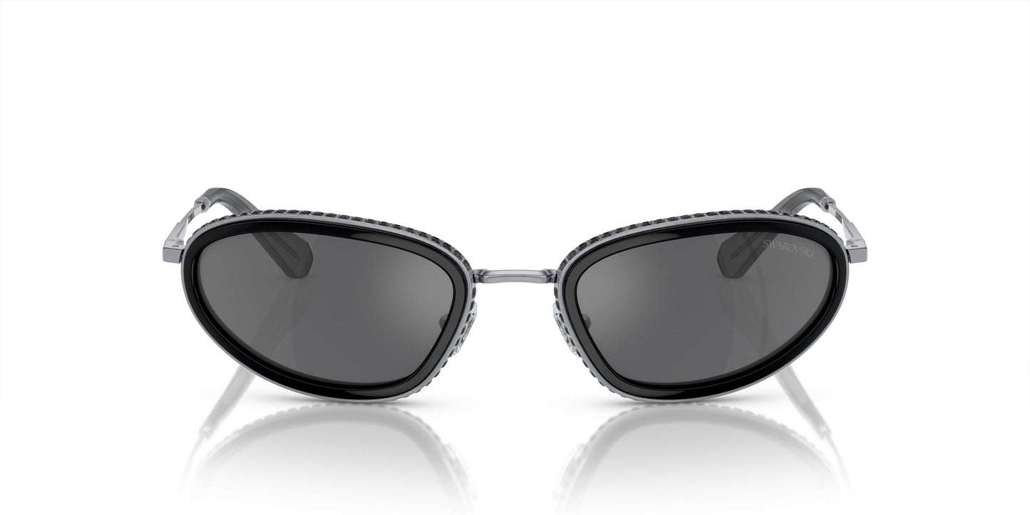 Ce modèle de lunettes de soleil réunit 120 raisons de l'adorer, grâce aux 120 cristaux Swarovski ornant les boucles. L'avant de la monture enveloppante irrégulière présente des boucles métalliques extérieures et des inserts uniques en acétate offrant une explosion de couleurs. 120 cristaux dans les couleurs golden shadow, silver night, light rose ou light sapphire complètent la monture métallique et les branches. Les branches métalliques élégantes arborent un discret logo Swarovski entre deux cristaux délicats et des embouts en acétate.