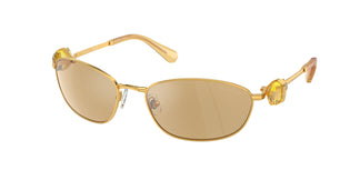 Une palette de couleurs fascinante et un design innovant de charnière rehaussent cette monture ovale étroite avec des verres à l'effet enveloppant subtil. Les cristaux lucent inspirés de la joaillerie offrent un contraste audacieux et saisissant avec l'élégant cadre métallique. Toutes les gammes de couleurs ont des verres et des cristaux assortis, sauf une, avec des cristaux élégants vert fougère et des verres noirs lisses en contraste. Front ovale avec des volumes élancés et un design de charnière lucent proéminent formé par deux cristaux semi-octogonaux.
