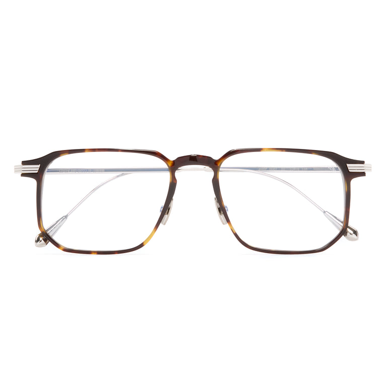 L'emblème Oyster de Cutler & Gross est intégré aux cornes cannelées de ces montures carrées. Fabriquées à la main, elles présentent une fine face en acétate et sont équilibrées par des branches ultra-légères en métal précieux.
